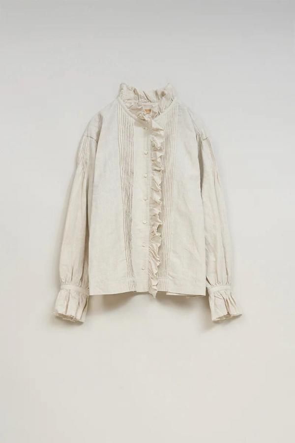 ◯ Nigel Cabourn woman - GATHER COLLAR BLOUSE C/L - IVORY