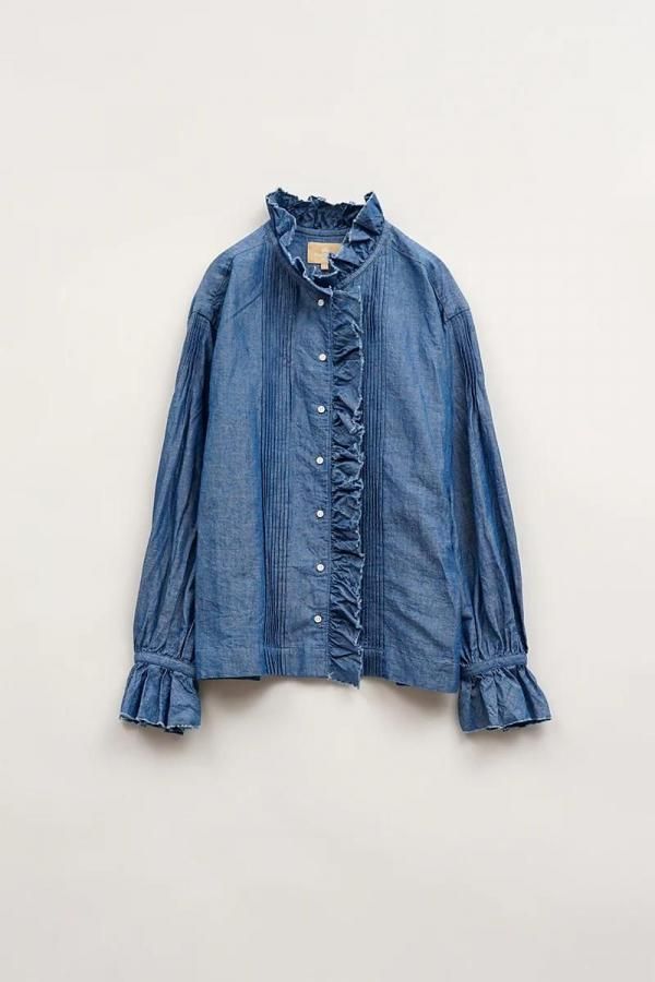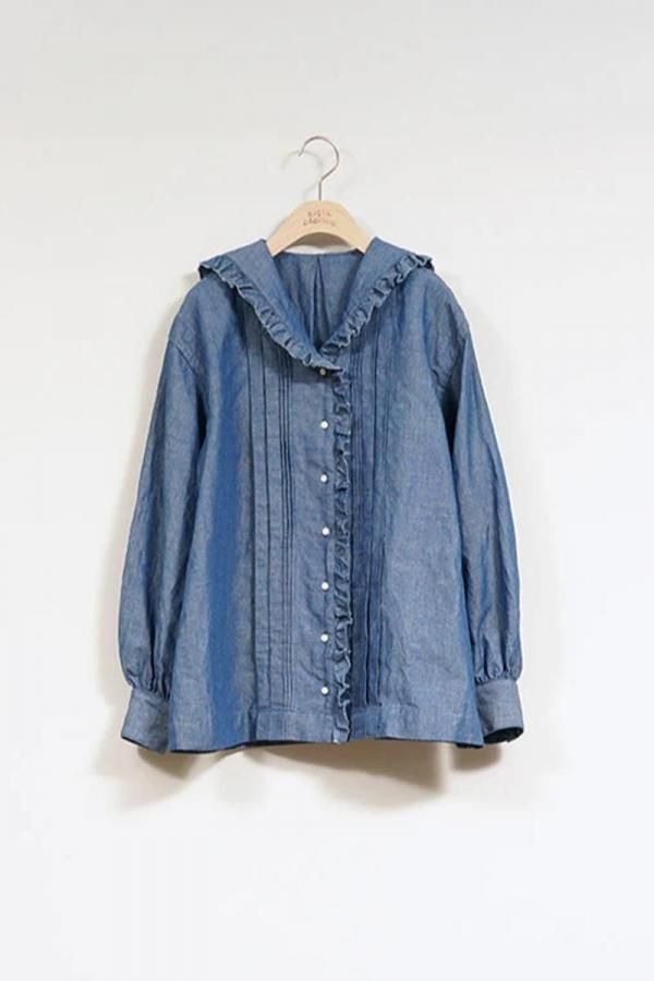 ◯ Nigel Cabourn woman - GATHER COLLAR BLOUSE C/L - INDIGO