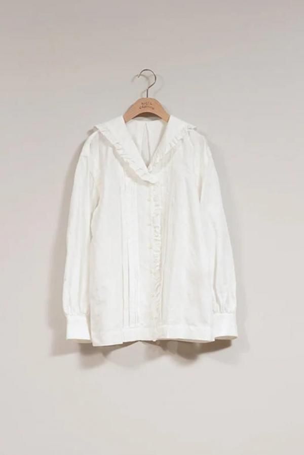 ◯ Nigel Cabourn woman - GATHER COLLAR BLOUSE - WHITE