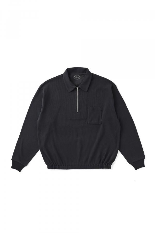 ○OLD JOE - QUATER ZIP SILK NEP RIBED SHIRTS - ONYX