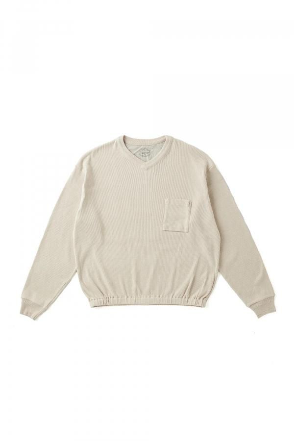 ○OLD JOE - VNECK SILK NEP RIBED TOPS - FOG