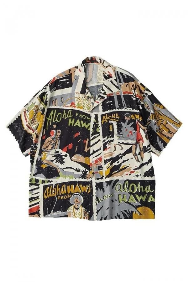 ○OLD JOE - SILK NEP CLOTH SOUVENIR SHIRTS (Short-sleeve) - ONYX