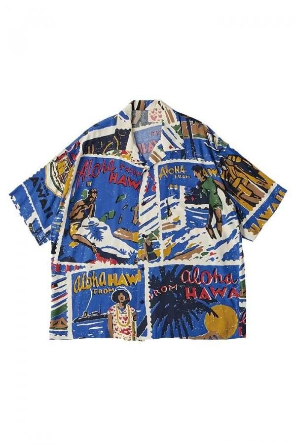 ○OLD JOE - ORIGINAL PRINTED OPEN COLLAR SHIRTS "Hebi" Short-sleeve