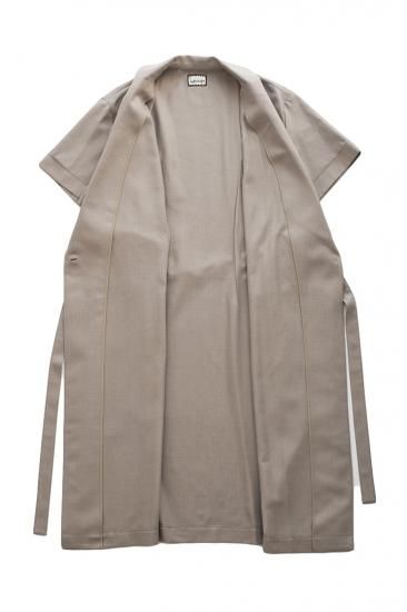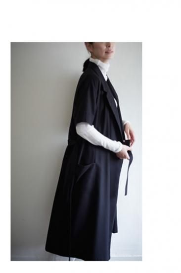 上品なコットンウールのヘリンボーン生地で仕立てた、 ワイドラペルが目を引くオーバーワンピース。 取り外し可能なウエストベルトが付いているのでギャザリングで着用しても良いシルエットで着用出来ます。