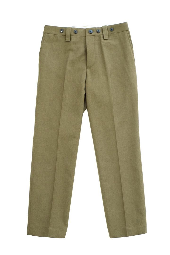 古い時代の英国ミリタリーワーキングドレスパンツベースデザインがクラシックな1本。 ベルト裏にセットされたマーベルトはシャツがはみ出すのを抑える英国ならではのテーラード仕立て。