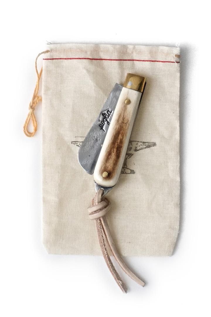 アメリカニューヨークブルックリンを拠点にハンドメードナイフを作成するMax Poglia氏と OLD JOEのエクスクルーシブコラボレートポケットナイフ。 既存にはないシンプルでモダンなハンドルパターンと ハンマーフィニッシュした刀身にOJブランドロゴを刻印したスペシャルな逸品。 用途や使用する人々により生まれる個性溢れる経年変化はこの先、何十年、何百年後にも残るようなロマンや歴史を刻み込める現代のナイフでは体験できない素晴しいプロダクツ。 ※OLD JOE FLAGSHIP STOREとPHAETONのみの販売となる少量生産のエクスクルーシブアイテムになります。 (サイズ) ナイフ部 6cm ハンドル部 8cm 全長 14cm (素材) ナイフ部 : スチール ハンドル部 : 骨スモーク×真鍮 (生産国) USA