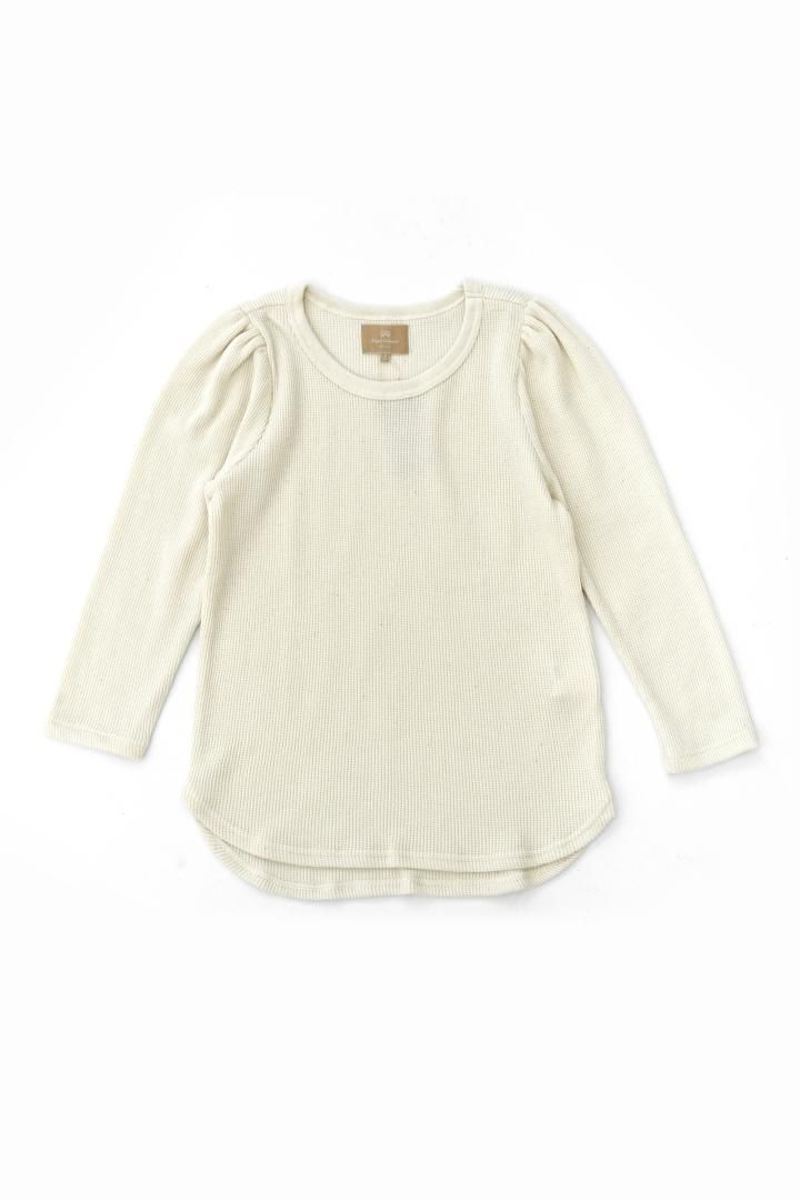 コットンウールジャージーのワッフル素材を使用した、ヴィンテージギャザースリーブのTシャツです。 ウールが11%入っているため素材のダレが少なく、ナチュラルに形を保ちます。柔らかく、膨らみがあるのが特徴です。肌に触れる裏面はオーガニックコットンを使用し、優しく気持ちが良い素材です。 ふんわりとしたギャザースリーブが特徴で、インナーとしても、一枚で着用してお出かけができる1着に仕上げています。