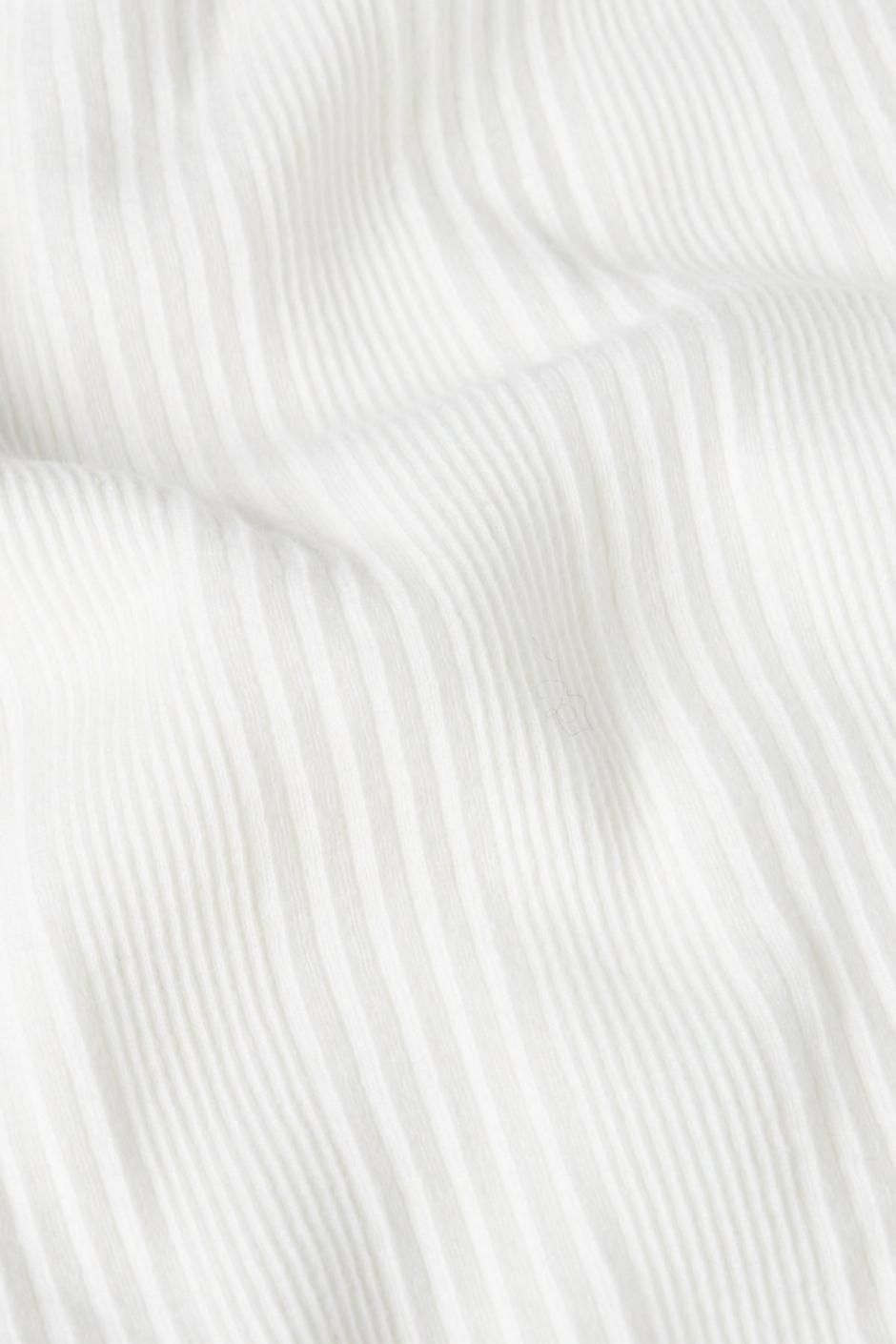 麻本来の自然な質感を残しながら、柔らかさとしなやかさを出すためにコットンをバランスよくミックスしたコットンリネンラミー素材を使いました。素材そのものの風合いを生かすようにナチュラルに仕上げています。軽やかさと、ほんのりとした温もりが感じられ、肌あたりもなめらかです。また、1本1本、職人の手で針を抜いて生まれた凹凸が伸縮性を生み、着心地をさらに快適にしています。