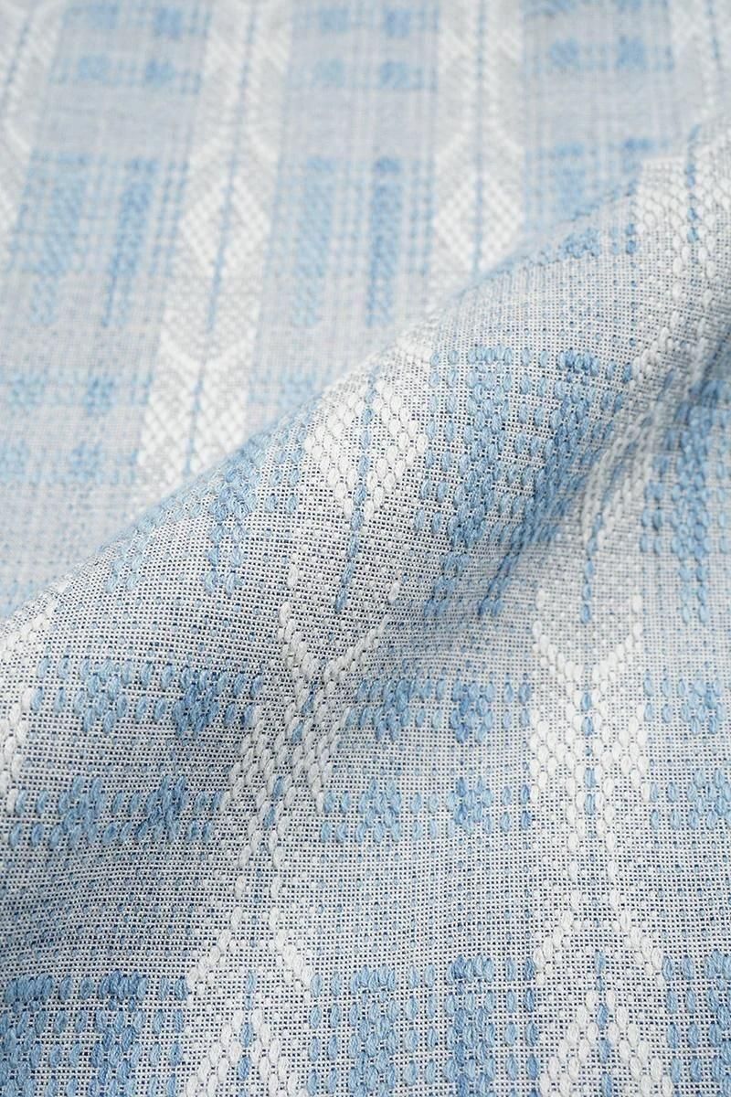 日本製の平織り生地に刺し子を施し、濃淡のインディゴ糸で静かに降る雨を思わせる絣(かすり)模様を表現。さらにブリーチ加工などを重ねることで、長年着込んだような柔らかな風合いと、経年変化を思わせるフェード感を再現しました。