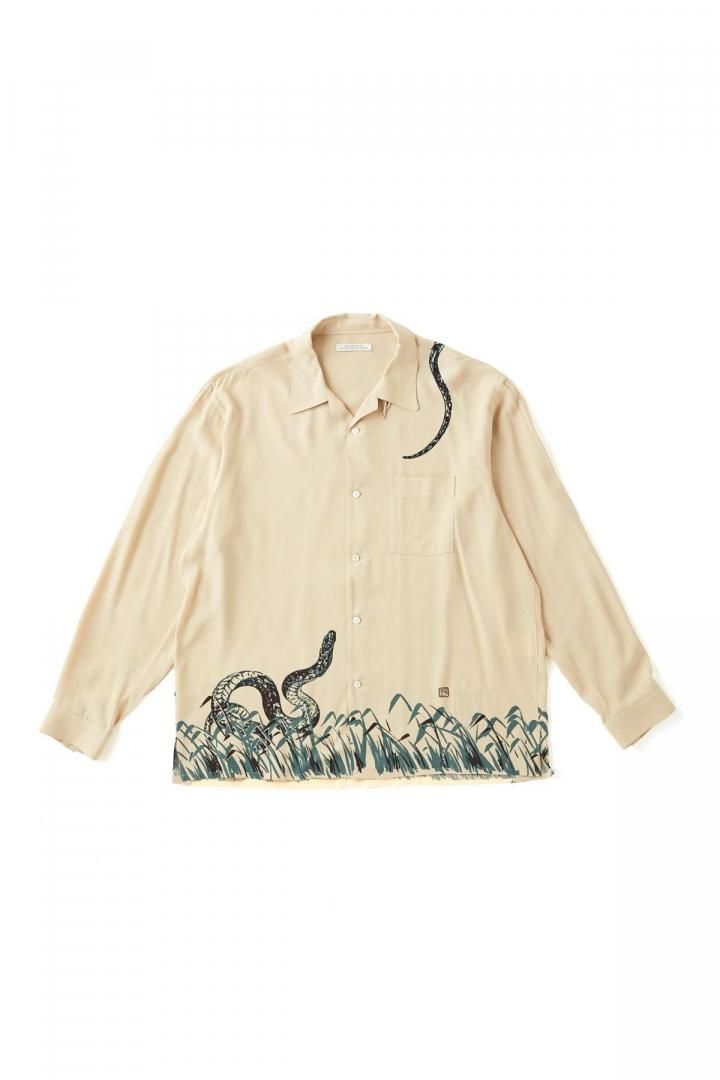 ○OLD JOE - ORIGINAL PRINTED OPEN COLLAR SHIRTS "Hebi" Long-sleeve