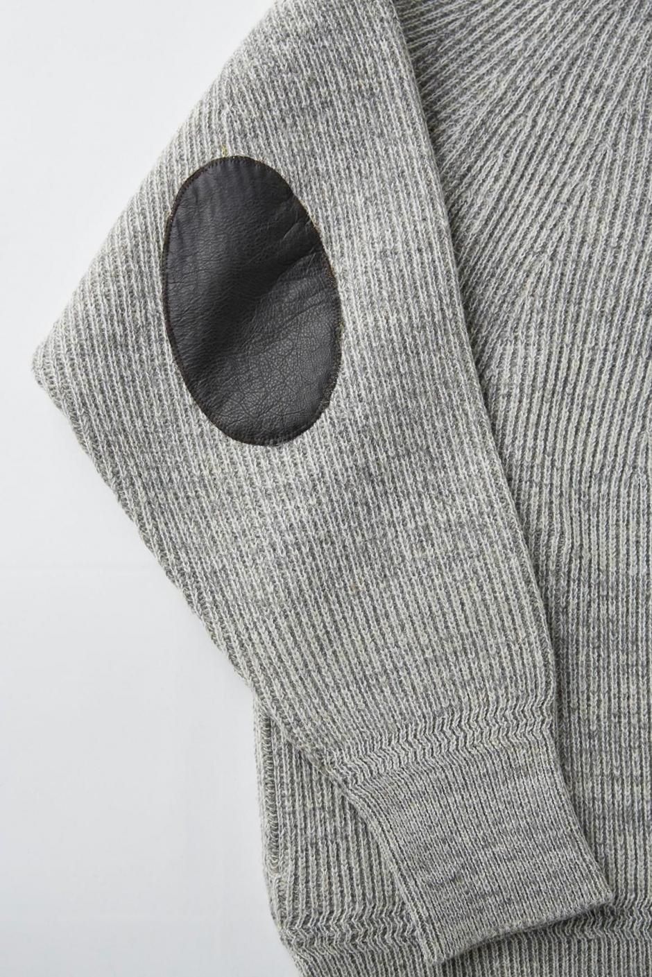 シグネチャーピースの求心編みのツイードジップセーター。身幅にゆとりを持たせているモダンなフィッティングで、カーフレザーで配されるエルボーパッチも、今季はハンドパティーナを施し経年変化の様を楽しめる。メインのマテリアルにはストレートウールとリネンケンピをブレンドさせ、上質な編み地の中に、粗野な雰囲気を持つケンピヤーンが主張し奥行きのある目面に仕上がっています。