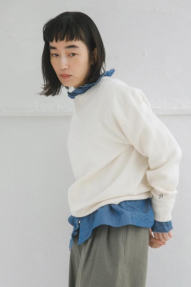 リブの編地や幅なども左右で変化をつけ、それぞれの年代らしさを表現。異なる時代を一着に融合させたデザインで、日常に取り入れやすく、シーズンレスで活躍する一着です。