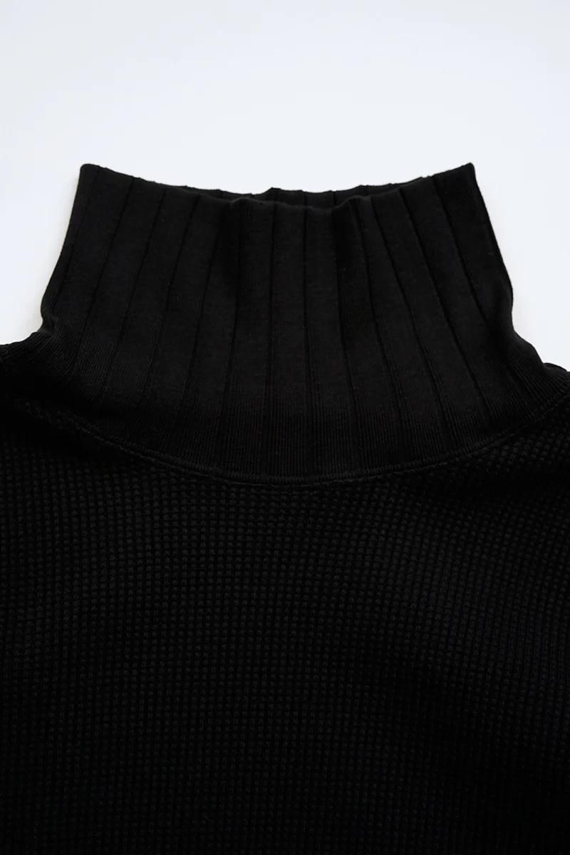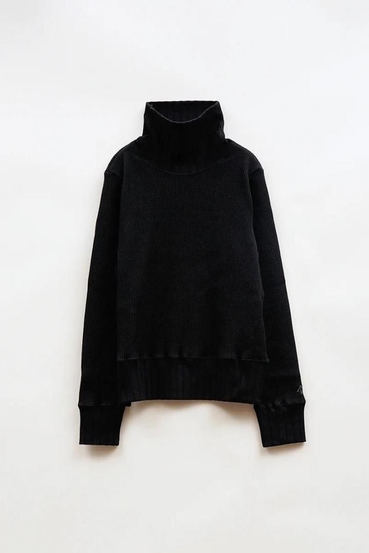 ◯ Nigel Cabourn woman - TURTLE NECK BIG WAFFLE - BLACK