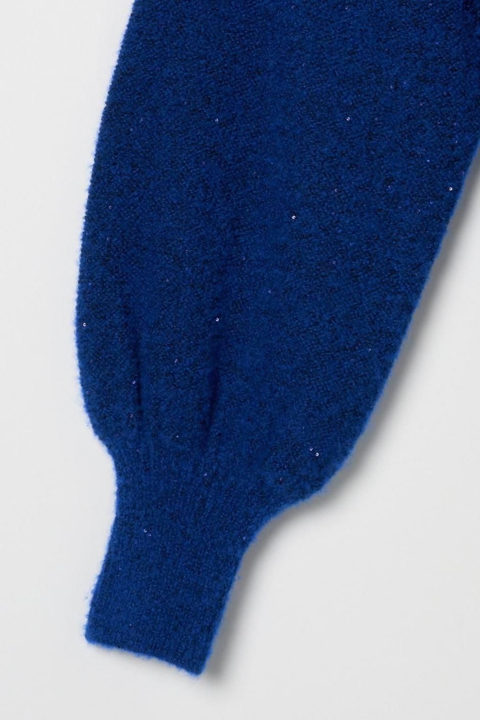 イタリアの紡績メーカーCARIAGGI社によるトップクオリティのカシミアシルクに極小のスパンコールを通した糸を、星を編むように丁寧に編み上げました。ベースには繊維が細く長いカシミアにシルクをブレンドし、さらに糸を甘く撚ることでふっくらと柔らかく、軽やかな仕上がりになっています。