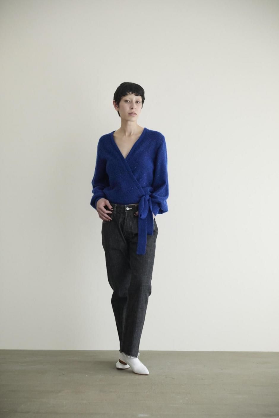 優しく包まれるような軽い着心地で、胸元は開きすぎず、肩周りはなだらかなライン。袖口は長めのリブ編みにして、袖にふっくらとしたボリュームを持たせました。ベルトはウエストにぐるりと巻くデザインで、腰回りをゆったりとカバーして、ほどよいメリハリを作ります。1枚でも華やかさのあるカシュクールニットは、キャミソールやタートルネックなど、中に重ねるインナーでコーディネートに変化をつけながら、長いシーズン様々にお楽しみいただけます。