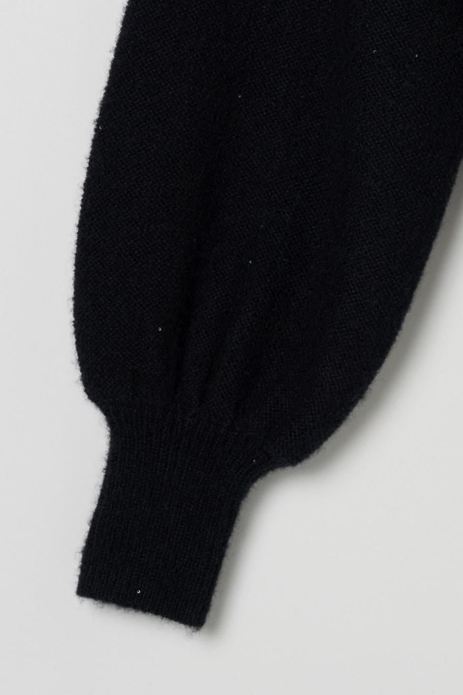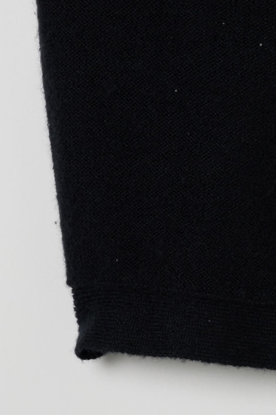 イタリアの紡績メーカーCARIAGGI社によるトップクオリティのカシミアシルクに極小のスパンコールを通した糸を、星を編むように丁寧に編み上げました。ベースには繊維が細く長いカシミアにシルクをブレンドし、さらに糸を甘く撚ることでふっくらと柔らかく、軽やかな仕上がりになっています。