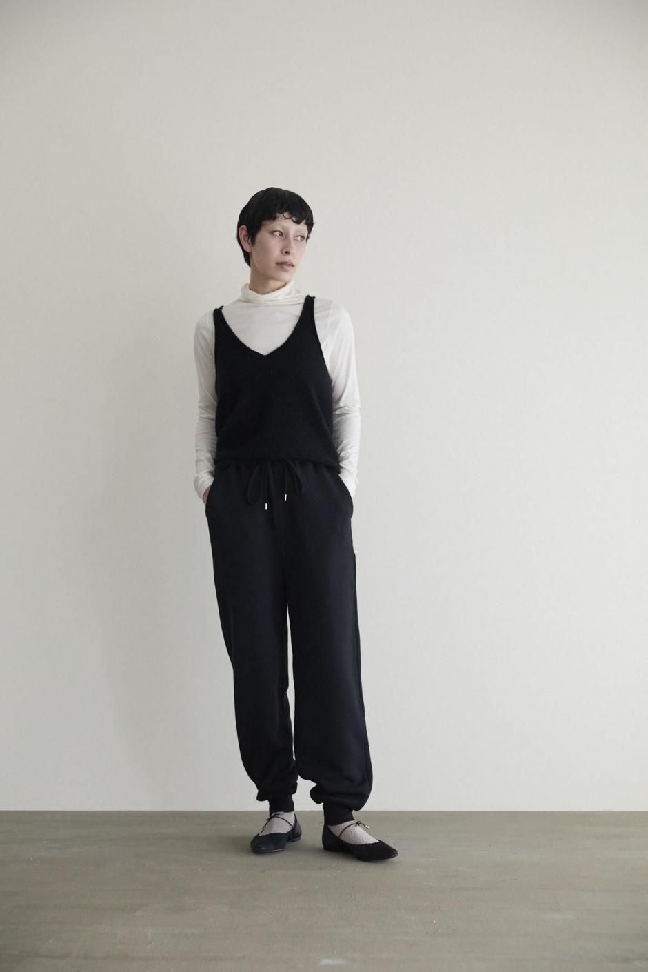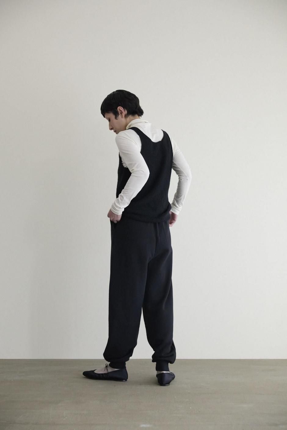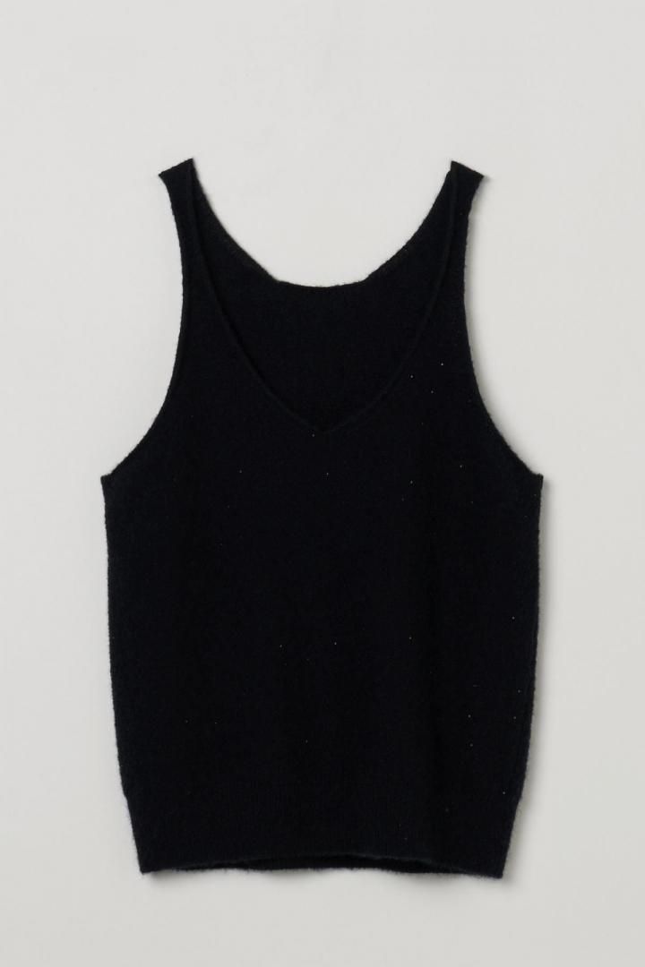 深めのVネックで、タンクトップのように軽やかに着られるニットベストです。裏編みを編みっぱなしに仕上げることで、端がくるっと巻いて、愛らしい表情がうまれました。ブラウスやニットに重ねれば、スタイリングに奥行きを添えてくれます。季節の移ろいと共に長く楽しめる。シンプルで自在なアイテムです。