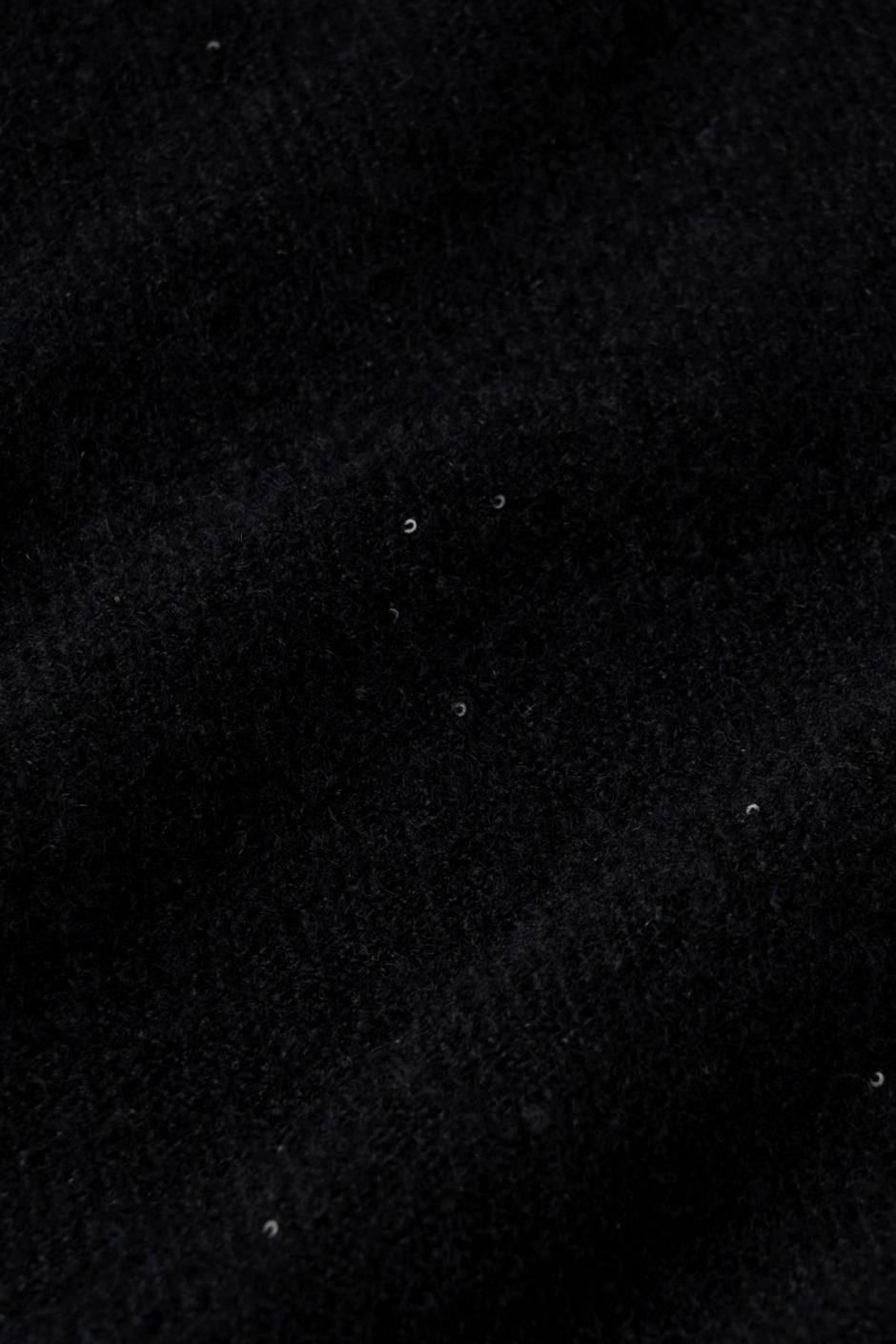 イタリアの紡績メーカーCARIAGGI社によるトップクオリティのカシミアシルクに極小のスパンコールを通した糸を、星を編むように丁寧に編み上げました。ベースには繊維が細く長いカシミアにシルクをブレンドし、さらに糸を甘く撚ることでふっくらと柔らかく、軽やかな仕上がりになっています。