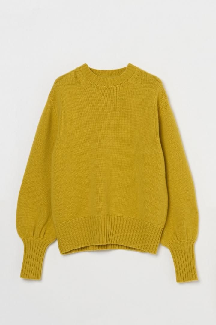 身幅とアームホールはゆとりを持たせて、身体を締めつけず、着る人の動きに柔らかく寄り添う、リラックスしたサイズ感に。ふっくらとボリュームを持たせた袖は長めのリブできゅっと締めて、パフスリーブのふくらみを強調するデザインです。リブ編みはざっくりとした編み方にすることで、カジュアルな雰囲気を持たせました。むっちりと程よい厚みのあるニットは、外気をしっかりとガードしながら内側の暖かさを守ってくれるような安心感を感じられます。
