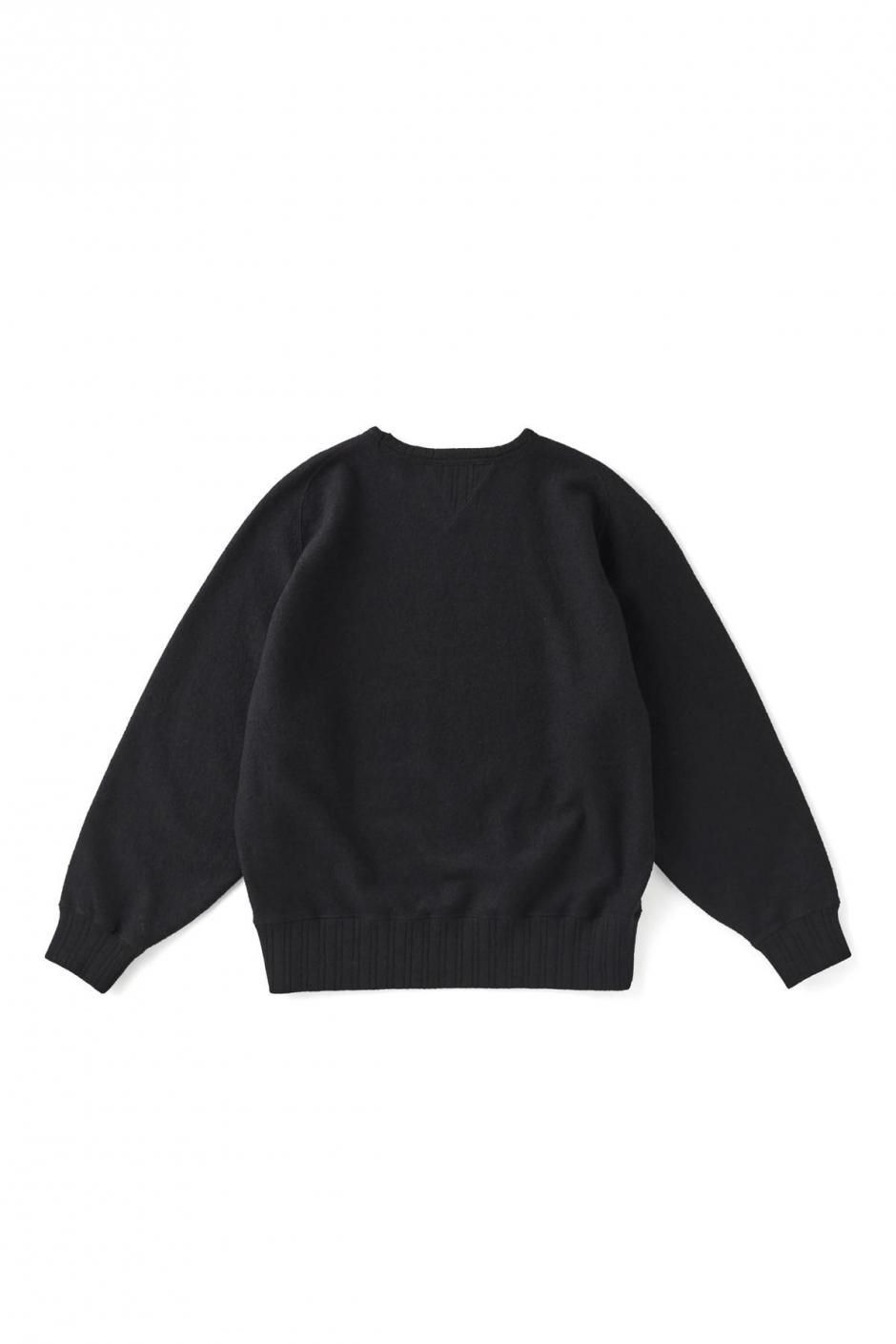 スクエア気味にカッティングされるネックライン、ラグラン、フリーダムスリーブをミックスさせたような クラシカルな雰囲気のAHなど、古き良きユニークなディテールが目を引くスウェットシャツ。ファンシーウールヤーンで編み立てたマテリアルは、上質な質感と心地よい肌触りが特徴的。またテーラーメイドのシャツに施されるような上品なイニシャル刺繍がクラシカルな雰囲気を盛り上げる。