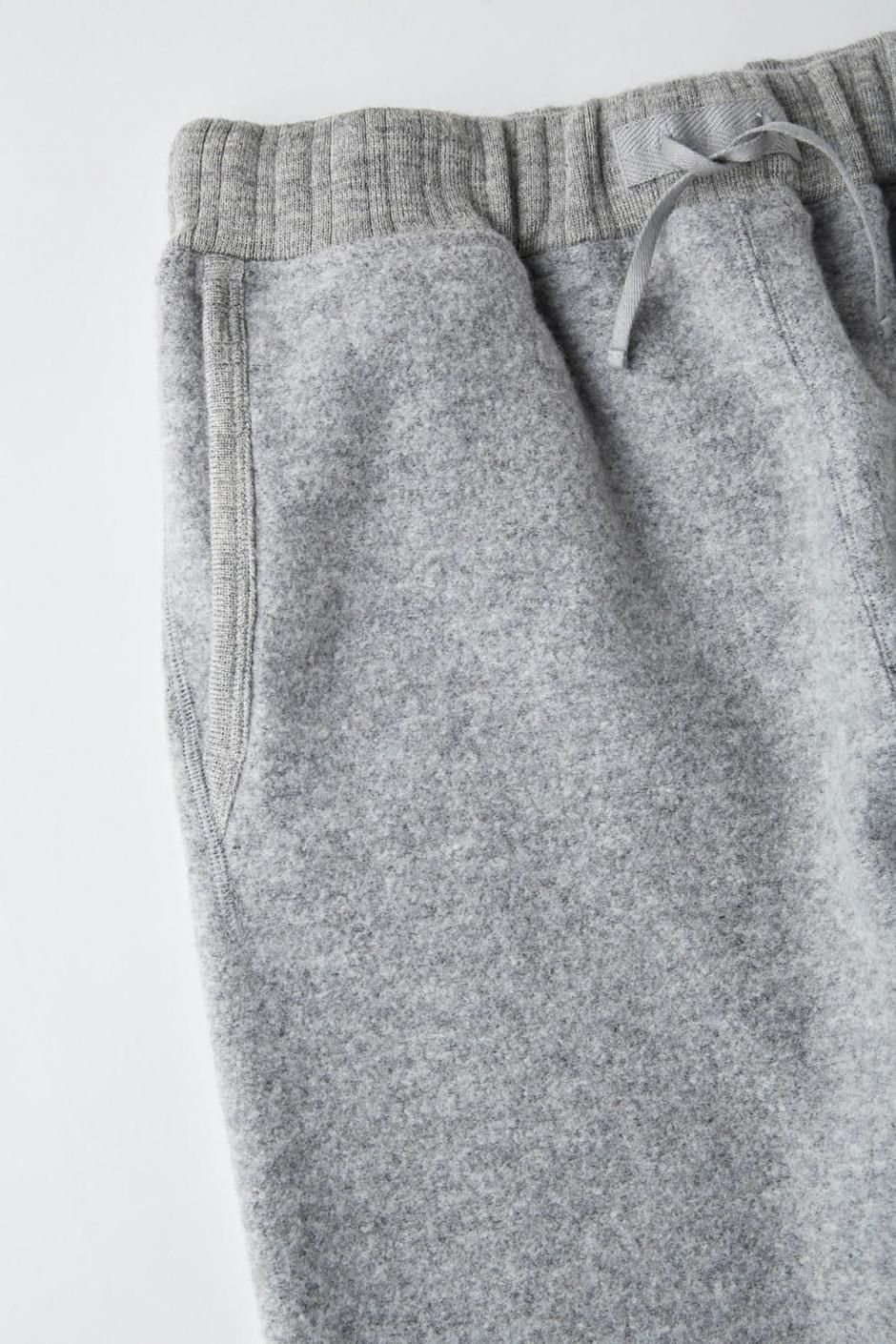 ウエストと裾に配されたドローコードでシルエットをアレンジすることができるスウェットパンツ。古き良きアスレチックウェアのディテールと、昔ながらのユニークなカッティングラインが雰囲気を盛り上げる。ファンシーウールヤーンで編み立てたマテリアルは、上質な質感と心地よい肌触りが特徴的。またテーラーメイドのシャツに施されるような上品なイニシャル刺繍がクラシカルな雰囲気を盛り上げる。
