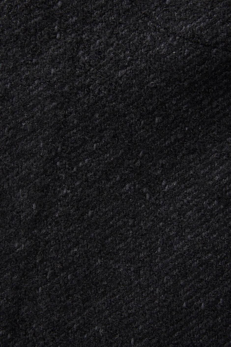 タテ糸、ヨコ糸ともに形状の異なる4種類の糸を使用することによってランダムな表情を出したツイード。特にタテ糸は2種類の糸の形状の違いとノットのアクセントに加え、色に濃度差をつけることで深みのある色合いに。ツイル・ヘリンボーンともにオリジナルの組織を採用しており他にはない素材。
